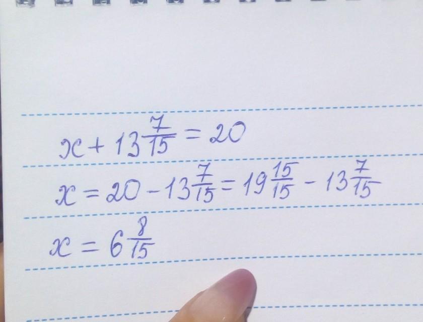 Х=20-13 7/15=19 15/15-13 7/15=6 8/15