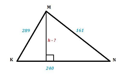 Чему равна высота, опущенная к стороне NK NK треугольника MNKMNK , если MN= 161MN=161 , NK=240NK=240 , KM = 289KM=289 ?