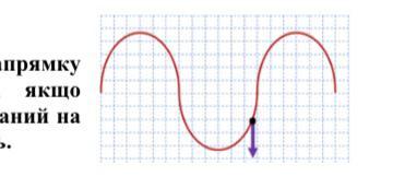 В якому напрямку поширюється поперечна хвиля, якщо точка хвилі має напрям руху, вказаний на малюнку? Свою відповідь поясніть.