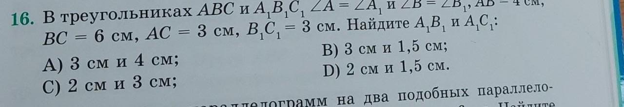Если два угла одного треугольника равны двум углам другого, то треугольники подобны. Если ∠A=∠A1,∠C=∠C1, то ABC~A1B1C1.