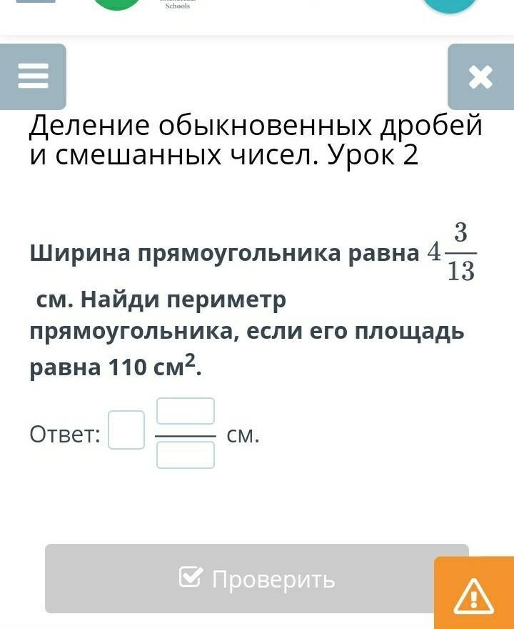 Площадь прямоугольника S=ab, b по условию будет равняться 4 3/13, запишем это число как 55/13.