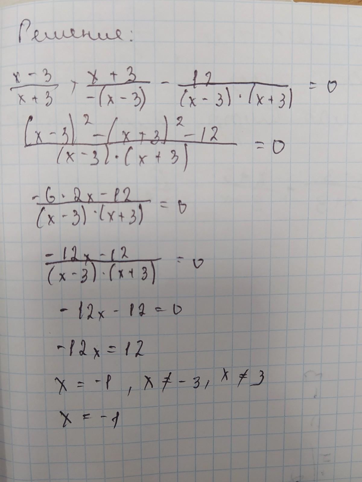 x-3/x+3+x+3/3-x-12/x^2-9=0