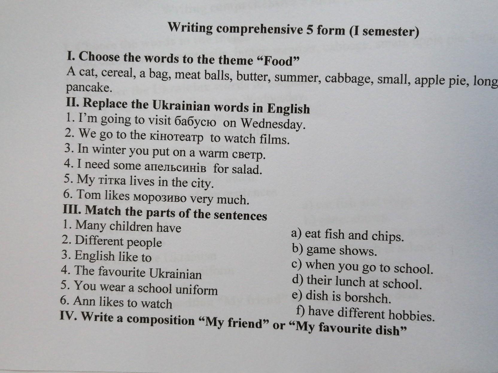 1.cereal,meat balls,butter,cabbage,apple pie,pancake.