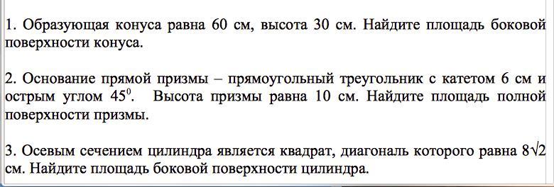 Образующая конуса равна 60 см, высота 30 см. Найдите площадь боковой поверхности конуса. Решите все 3 задания - дам 80 баллов. Мне очень срочно надо