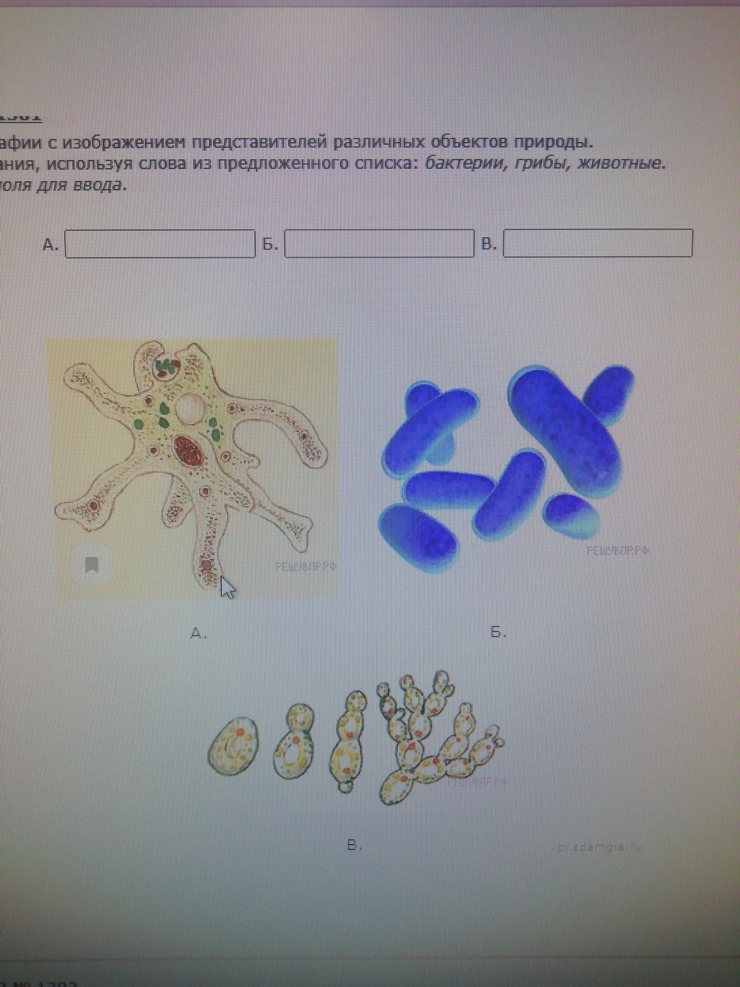 Рассмотрите фотографии с изображением представителей различных объектов природы Подпишите их названия используя слова из предложенного списка бактерии, грибы, животные,