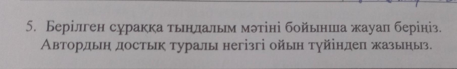 5. Берілген сұраққа тыңдалым мәтіні бойынша жауап беріңіз. Автордың достық туралы негізгі ойын түйіндеп жазыңыз.
