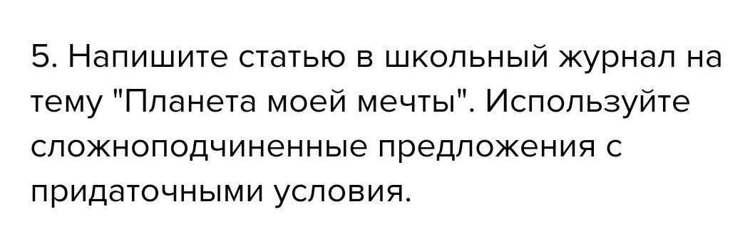 Ответ:У меня есть планета моей мечты. На ней летают машины. Там нет воров не курят не пьют и не загрязняют окружающею природу. На этой планете есть сладости знания и кучу друзей. И там нет грусти слез матов и руганий там все хорошо. Там дома из вафель есть герои мультфильмов и некто никогда та не умирает.