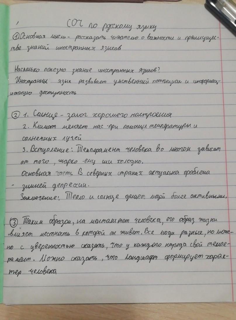 Чтение Задание 2 Прочитайте текст, выполните задания. Текст 1. Климат меняет нас при помощи температуры и солнечных лучей. Темперамент человека во многом зависит от того, жарко ему или холодно, и от того, сколько солнца он получает. Дело в том, что в течение суток человеческий организм вырабатывает разные гормоны, и, чтобы, собственно, жить долго и счастливо, человеку необходим чистый воздух, солнце в дневное время и хороший ночной сон. Именно поэтому люди в горах живут так долго. В северных странах актуальна проблема зимней депрессии. Зимой мы чувствуем себя несчастными, нам тяжело справляться с нарастающими проблемами и кажется, будто весна и радость никогда больше не придут. Всё это зависит от солнца. Когда его нет, гормон счастья не вырабатывается, и поэтому на зиму всегда лучше уезжать в солнечную страну, где зимняя депрессия вас не достанет. Тепло и солнце делают людей более активными и помогают им лучше мыслить. Ответьте на вопросы и выполните задания. 1. Озаглавьте текст. 2. Выпишите из текста предложение, отражающее его основную мысль. 3. В какой части текста (вступление, основная часть, заключение) находится это предложение? Почему? Ответ аргументируйте. 4. Выпишите служебные части речи (предлоги, союзы, частицы; обозначьте их) . Выпишите причастия, возвратные глаголы, выделите суффиксы, укажите вид.пожалуйста Соч