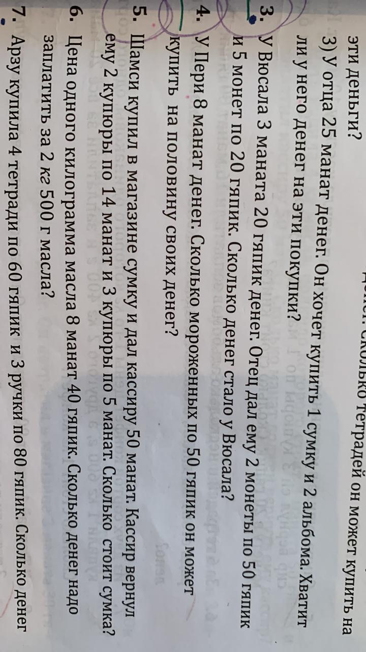 3. 5 манат 20 гяпик 4. 8 мороженных 5.8 манат