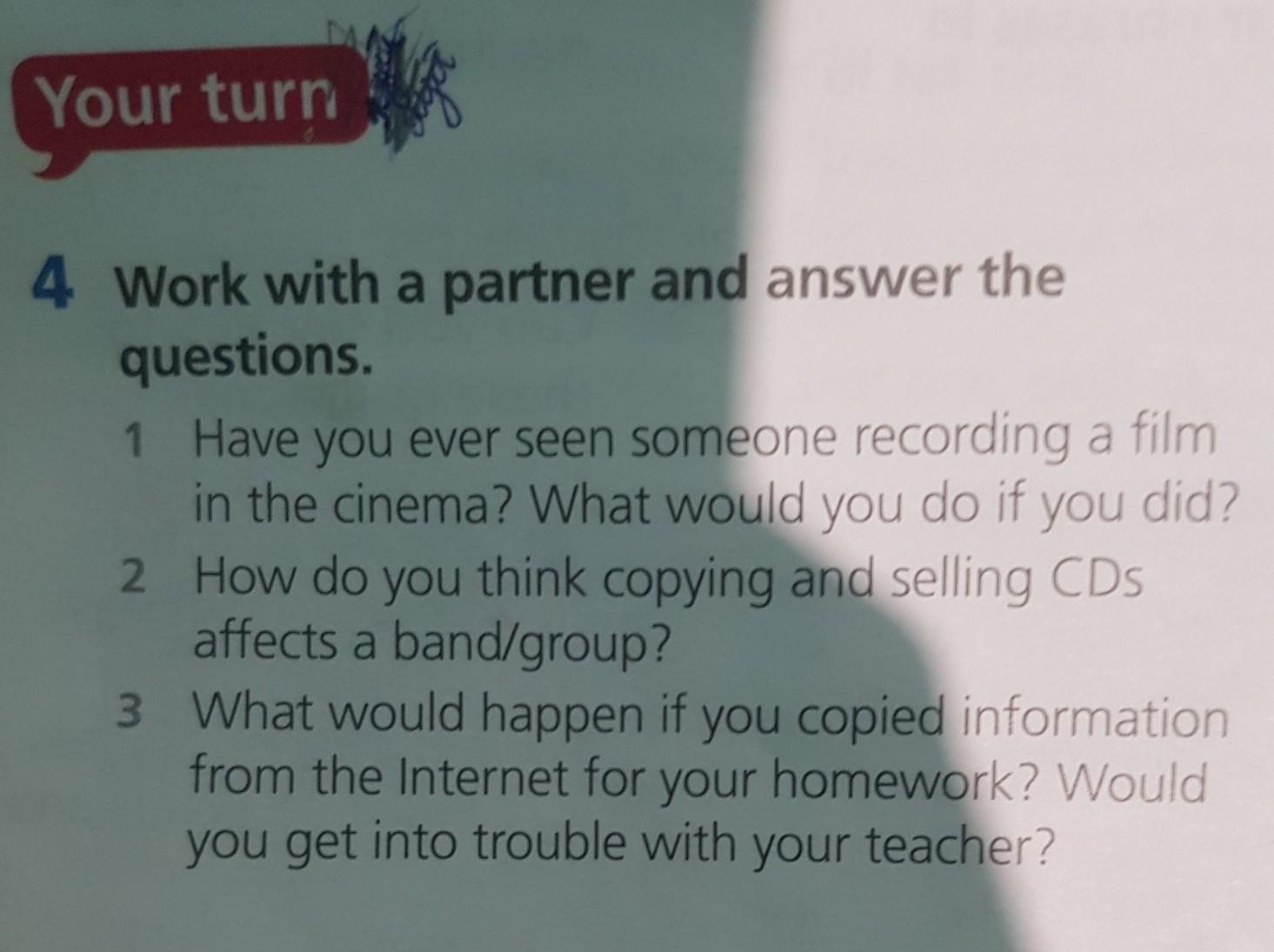 3. What would happen if you copied information from the Internet for your homework? Would you get into trouble with your teacher?
