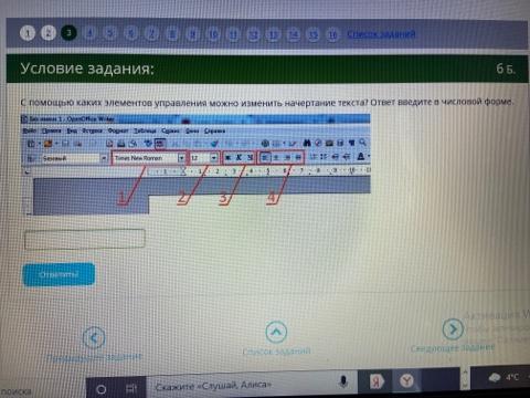 С помощью каких элементов управления можно изменить начертание текста? Ответ введите в числовой форме.