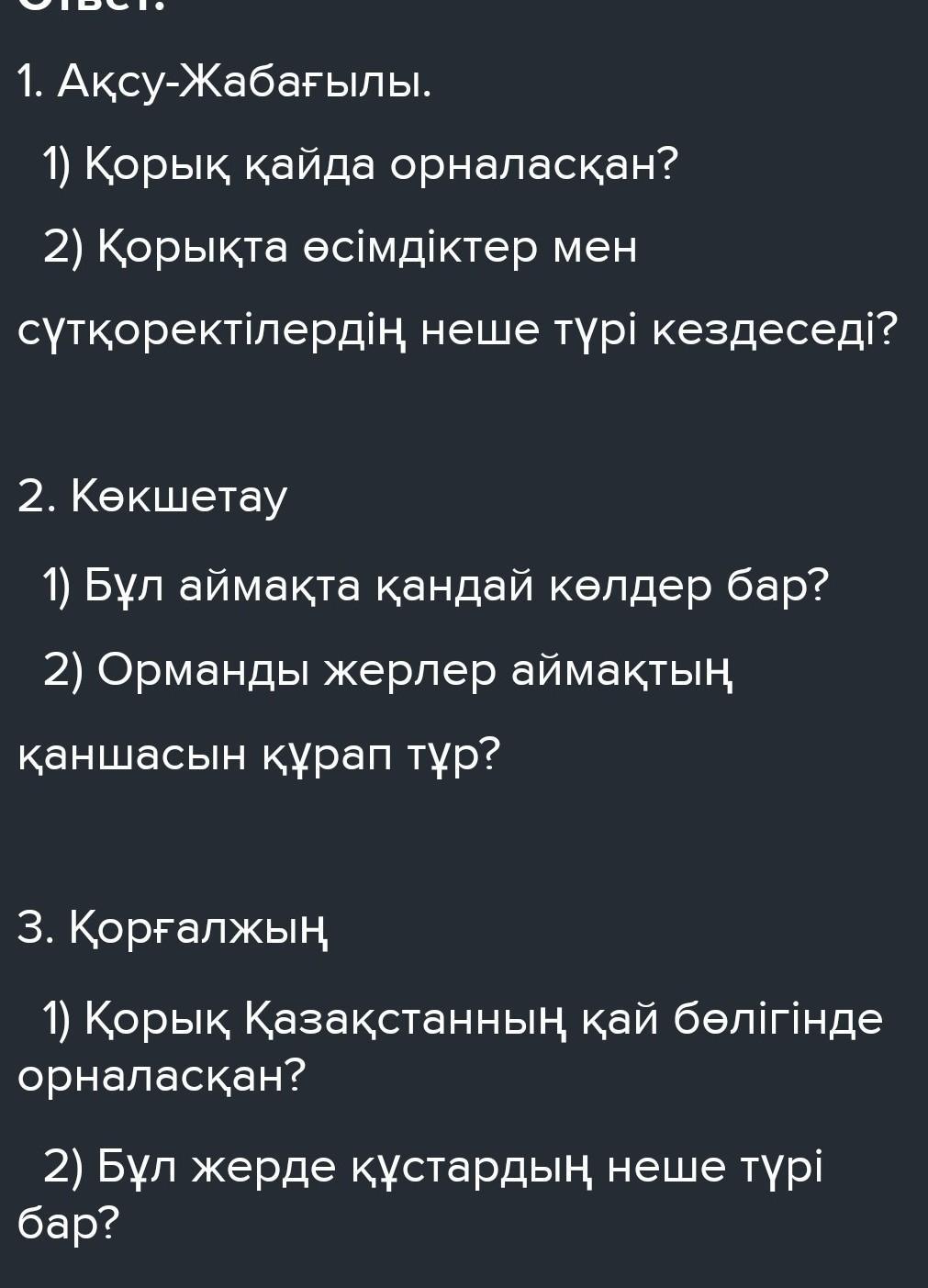 1) Қорық Қазақстанның қай бөлігінде орналасқан?