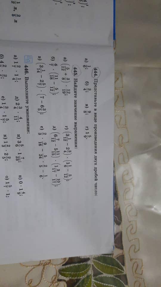 Найдите значение выражения: (5/12+3/8)×12/19; 6/7×(11/18-5/12); (3 1/14-2 5/7)×(7-6 3/5); (3 1/12-2 3/4)×(1 1/6)-5/12); (6 7/12--5 11/15)×(1 3/17-10/17); 2/3×9/16-5/24×2/5-1/6