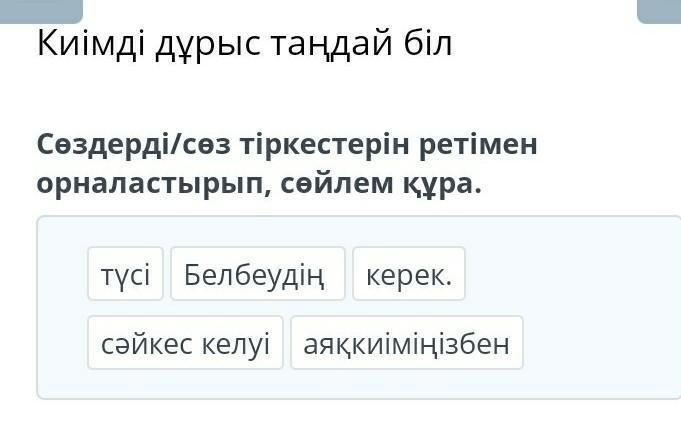 Киімді дұрыс таңдай біл Сөздерді/сөз тіркестерін ретімен орналастырып, сөйлем құра. түсі Белбеудің керек. сәйкес келуі аяқкиіміңізбен