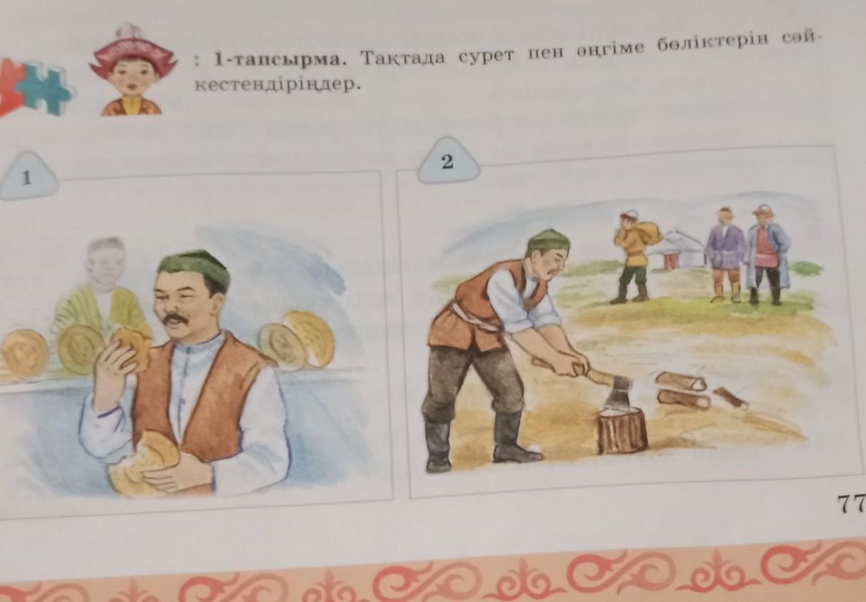 : 1-тапсырма. Тақтада сурет пен әңгіме бөліктерін сәйкетендіріңдер.