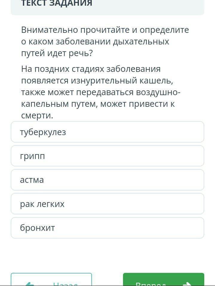 Внимательно прочитайте и определите о каком заболевании дыхательных путей идет речь?