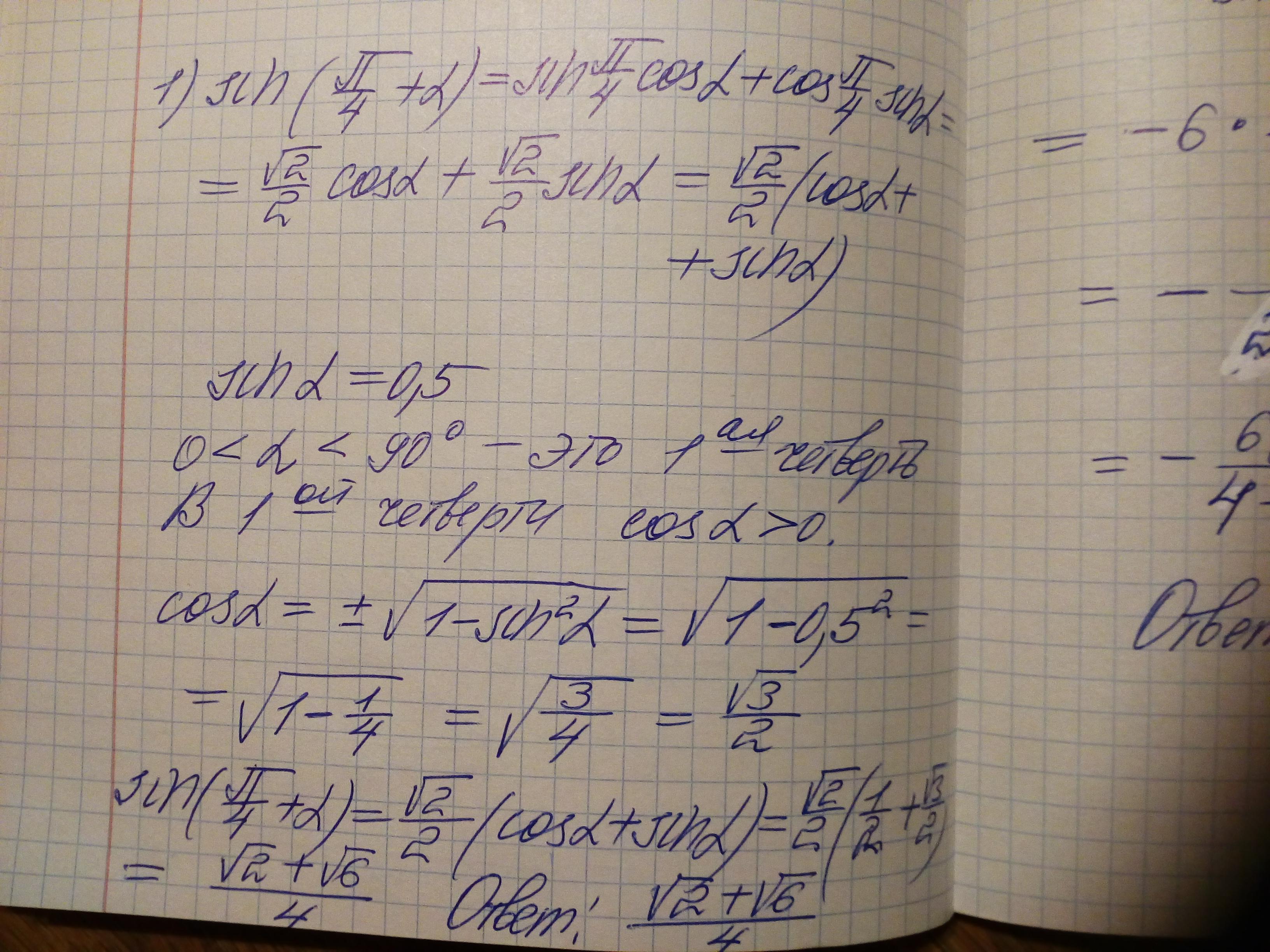 1)Обчисліть: sin(п/4 + a) якщо sin a = 0.5
