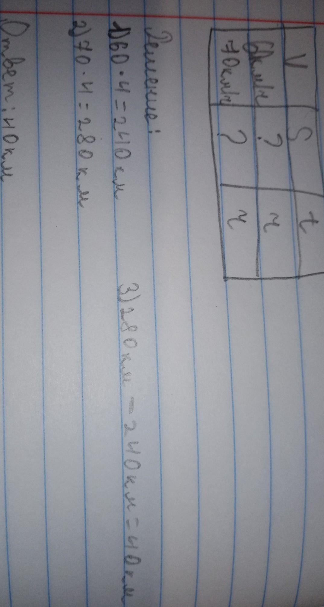 Два поезда ехали напротив друг друга, первый поезд 60км/ч а второй 70км/ч. Какое расстояние будет между ними через 4часа ?