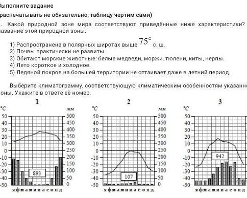 2. Выберите климатограмму, соответствующую климатическим особенностям указанной Вами природной зоны. Укажите в ответе её номер.