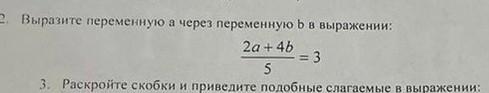 10 2. Выразите переменную а через переменную ь в выражении: (2a + 4b)/5 = 3