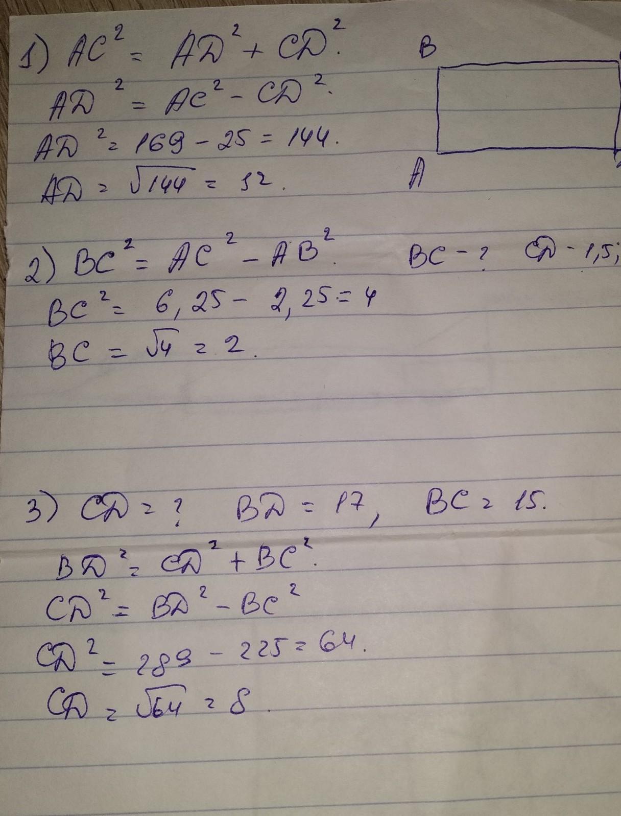 в) CD, если BD=17, ВС = 15.