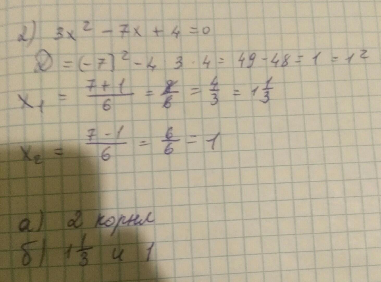 2) 3x^2-7x+4=0