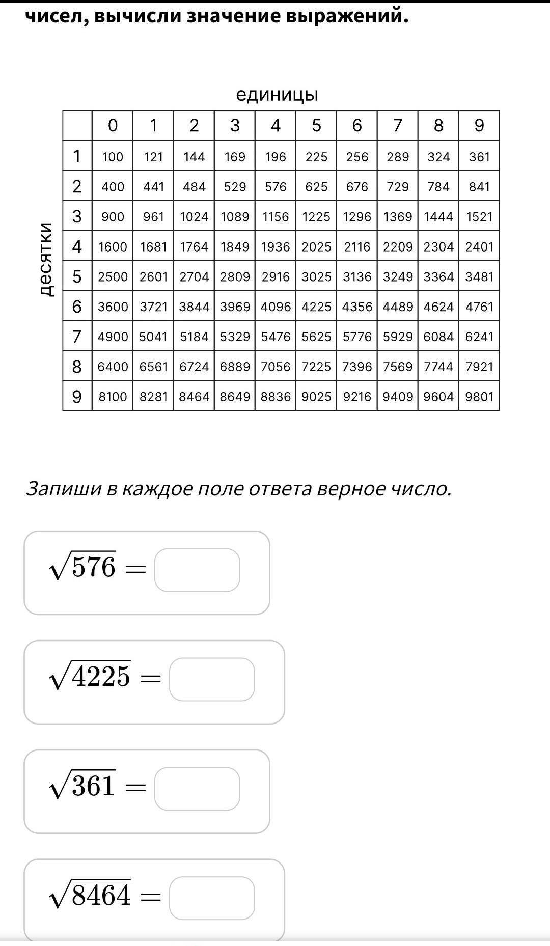 \sqrt{576}  =  \sqrt{24 {}^{2} }  = 24 \\  \sqrt{4225}  =  \sqrt{65 {}^{2} }  = 65