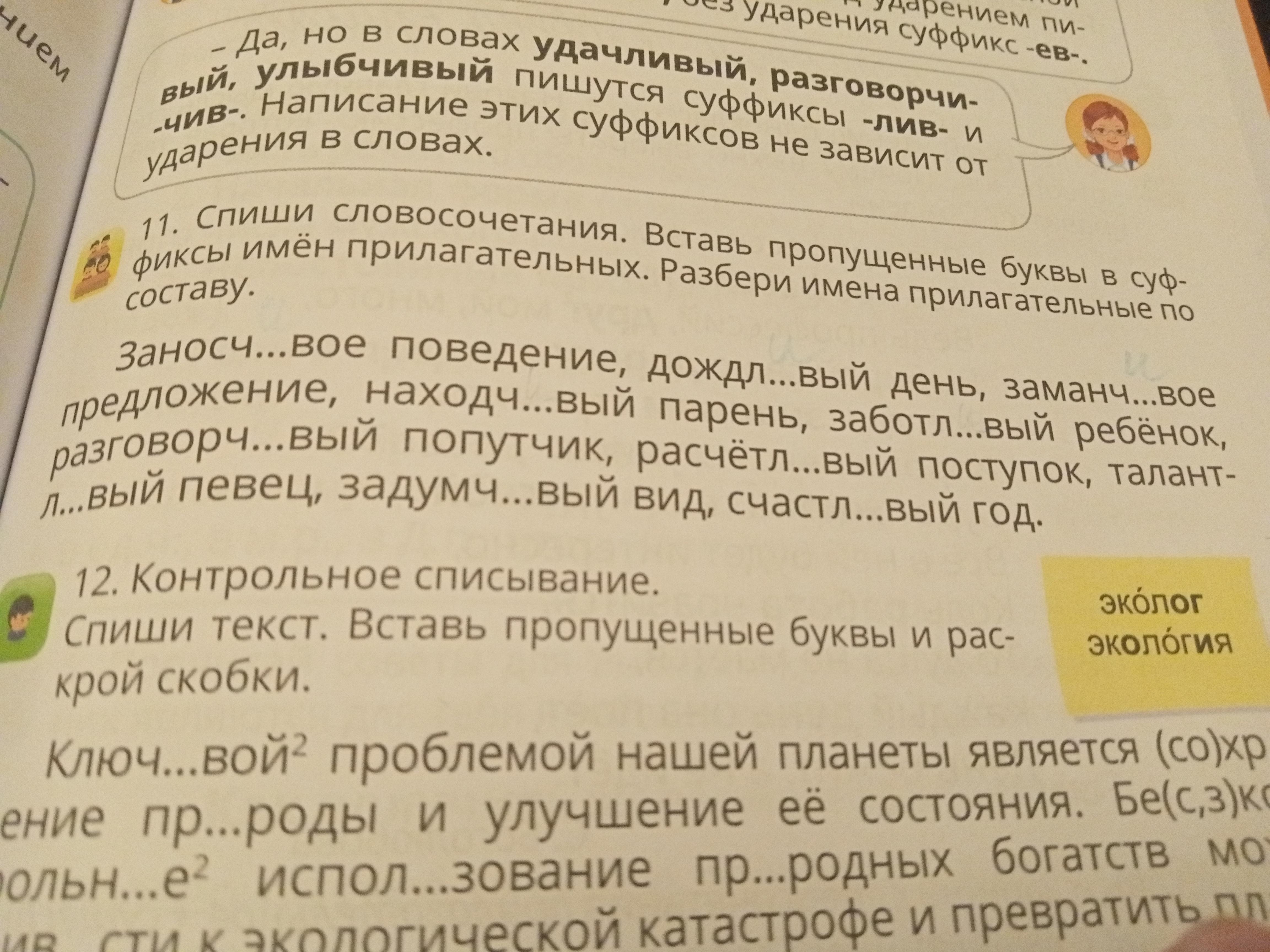 Заносчивое поведение, дождливый день, заманчивое предложение, находчивый парень, заботливый ребёнок, разговорчивый попутчик, расчётливый поступок, талантливый певец, задумчивый вид, счастливый год.