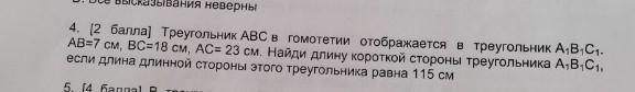 При гомотетии соотношения длин сторон пропорциональны, значит отношения коротких сторон равны отношению длинных, значит короткая сторона будет равна 7 * 115 / 23 = 35 см.
