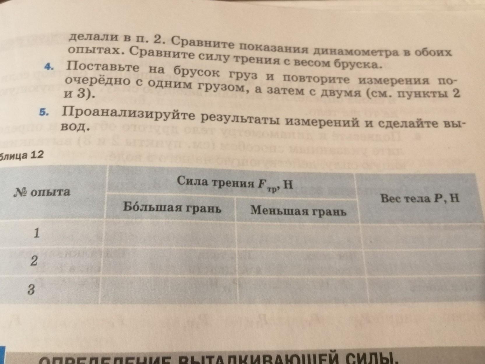 выяснение зависимости силы трения скольжения от площади соприкосновения тел и прижимающей силы таблица