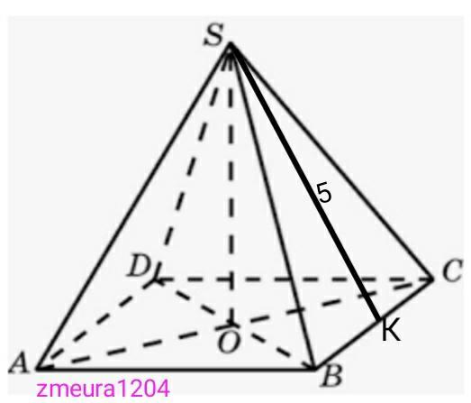 ВС=Sбок/(2*SK)=60/(2*5)=60/10=6см сторона квадрата.