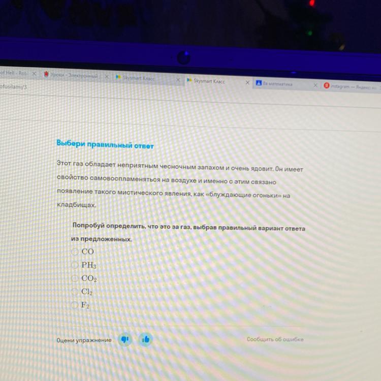 Попробуй определить, что это за газ, выбрав правильный вариант ответа