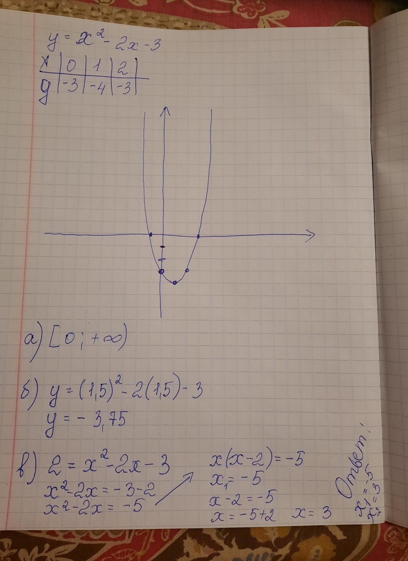 а) промежутки возрастания функции; б) значение y, при x = 1,5