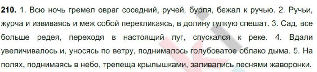Деепричастные обороты: журча и извиваясь и меж собой перекликаясь; всё больше редея; переходя в настоящий луг; уносясь по ветру; поднимаясь в небо, трепеща крылышками.