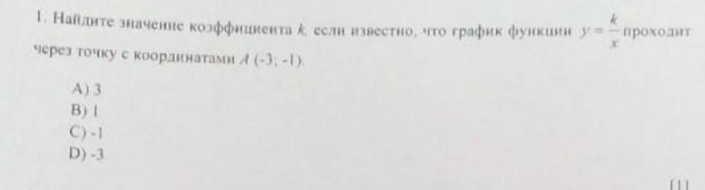 -1=к/(-3)⇒к=3 - верный ответ А