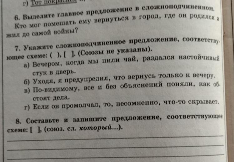 6. [ ] главное, ( ) придаточное.