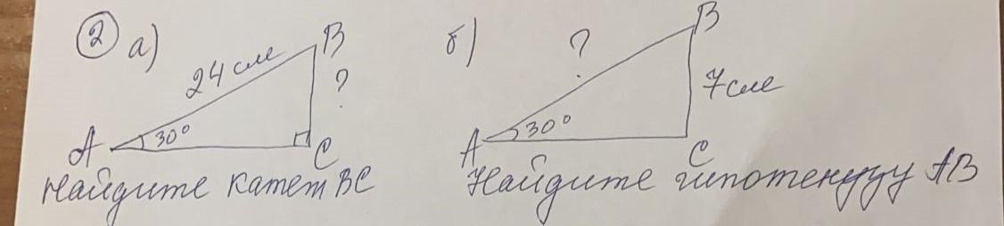 б) гипотенуза AB=14 потому что катет который находится напротив кута в тридцать градусов в 2 раза меньше за гипотенузу