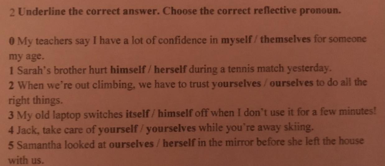 ДАЮ 20 БАЛЛОВ!! СРОЧНО!!!Underline the correct answer. Choose the correct reflective pronoun.