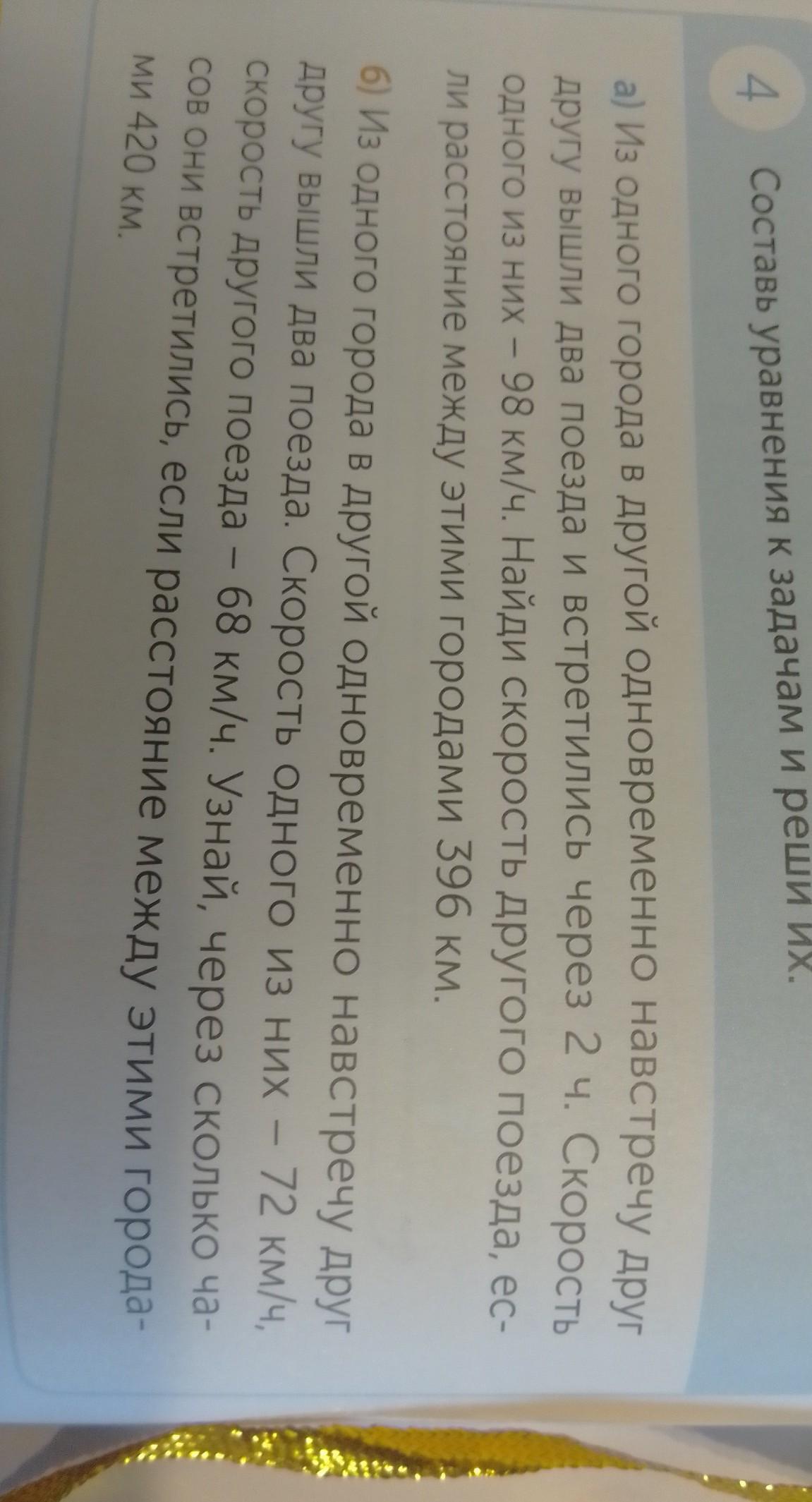 396:2=198(км/ч)скорость двух поездов