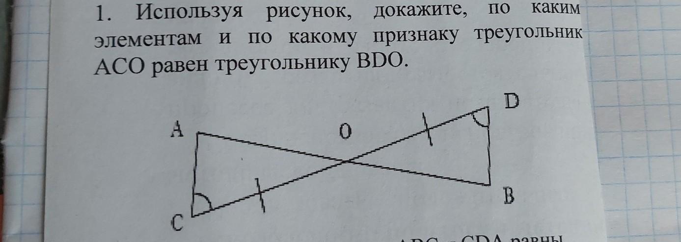 Тут всё просто. (тр. - треугольник) тр.AOC и тр.OBD равны по 2 признаку равенство треугольников.