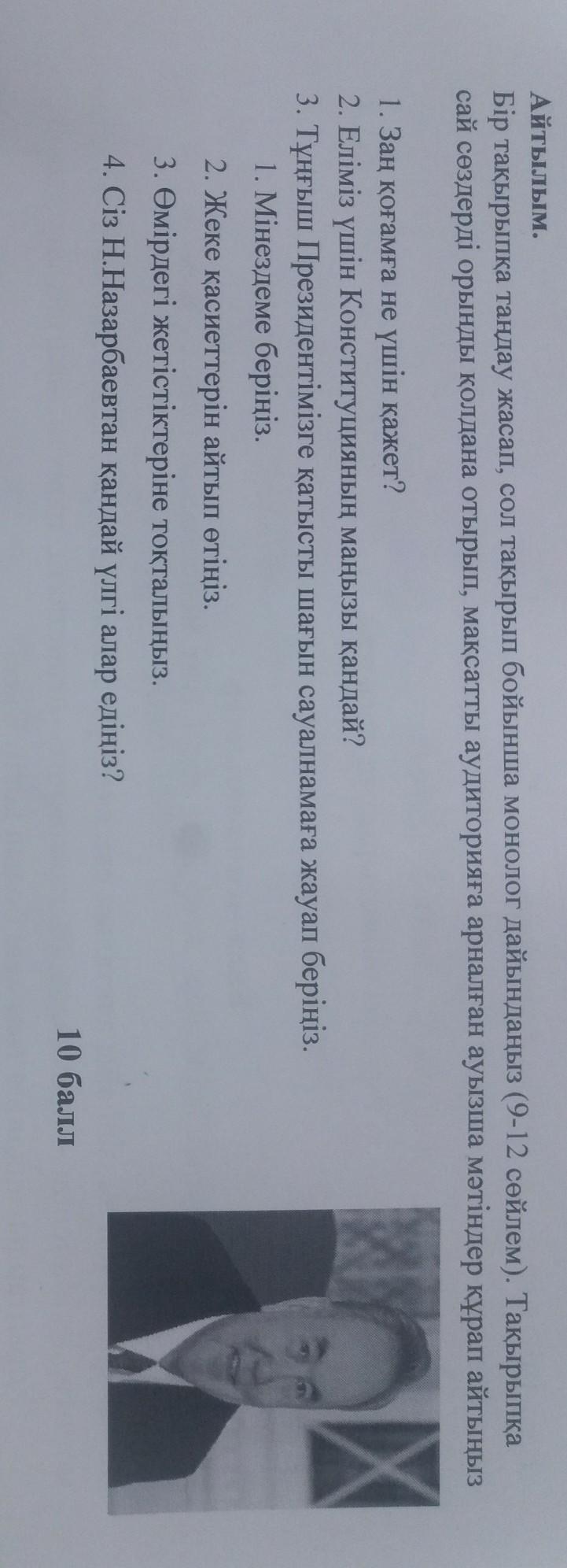 Бір тақырыпқа таңдау жасап, сол тақырып бойынша монолог дайындаңыз (9-12 сөйлем). ТақE