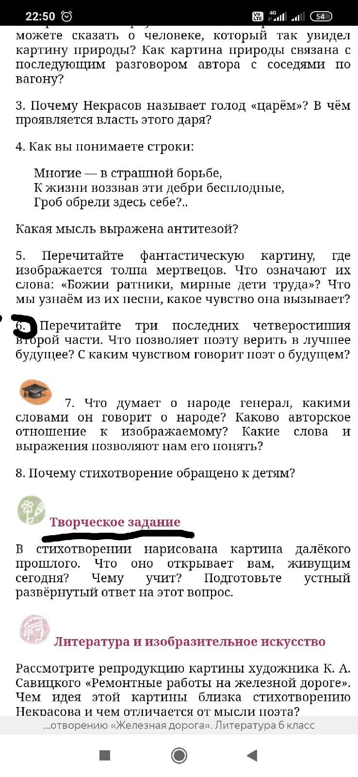 Пожалуйсто 6 вопрос , этот вопрос по стиху "желазная дорога" срочно. Через час сдавать!!!! Творческое задание делать не надо!)