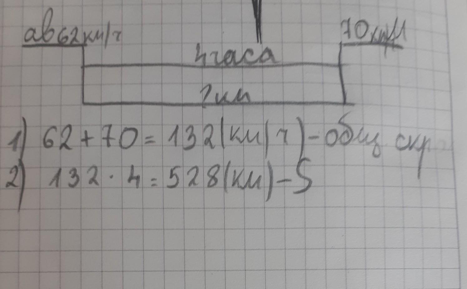 города. Скорость автомобиля 62 км/ч, а скорость мотоцикла 70км/ч. Какое расстояние будет