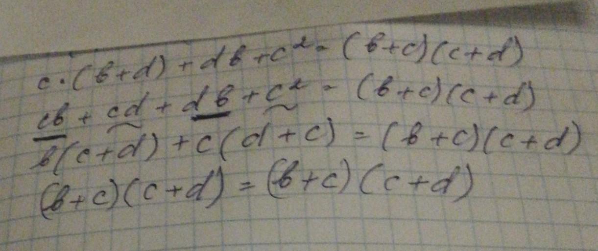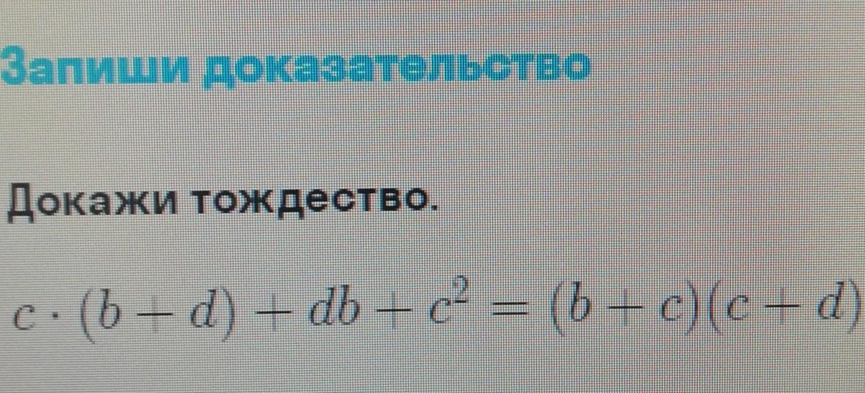 ПОМОГИТЕ ПОЖАЛУЙСТА ДОЮ 20 БАЛОВ 7 КЛАСС. Докажи тождество. с*(b+d) +db+cво 2 =(b+c)(c+d)