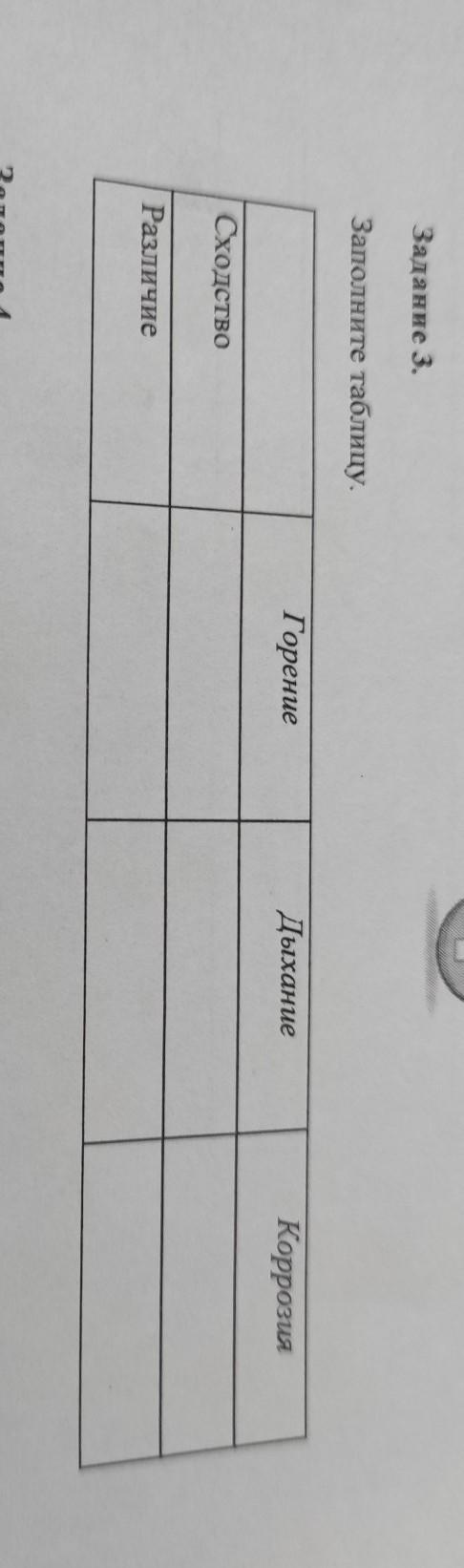 Задание 3. Заполните таблицу. Горение Дыхание Коррозия Сходство Различие