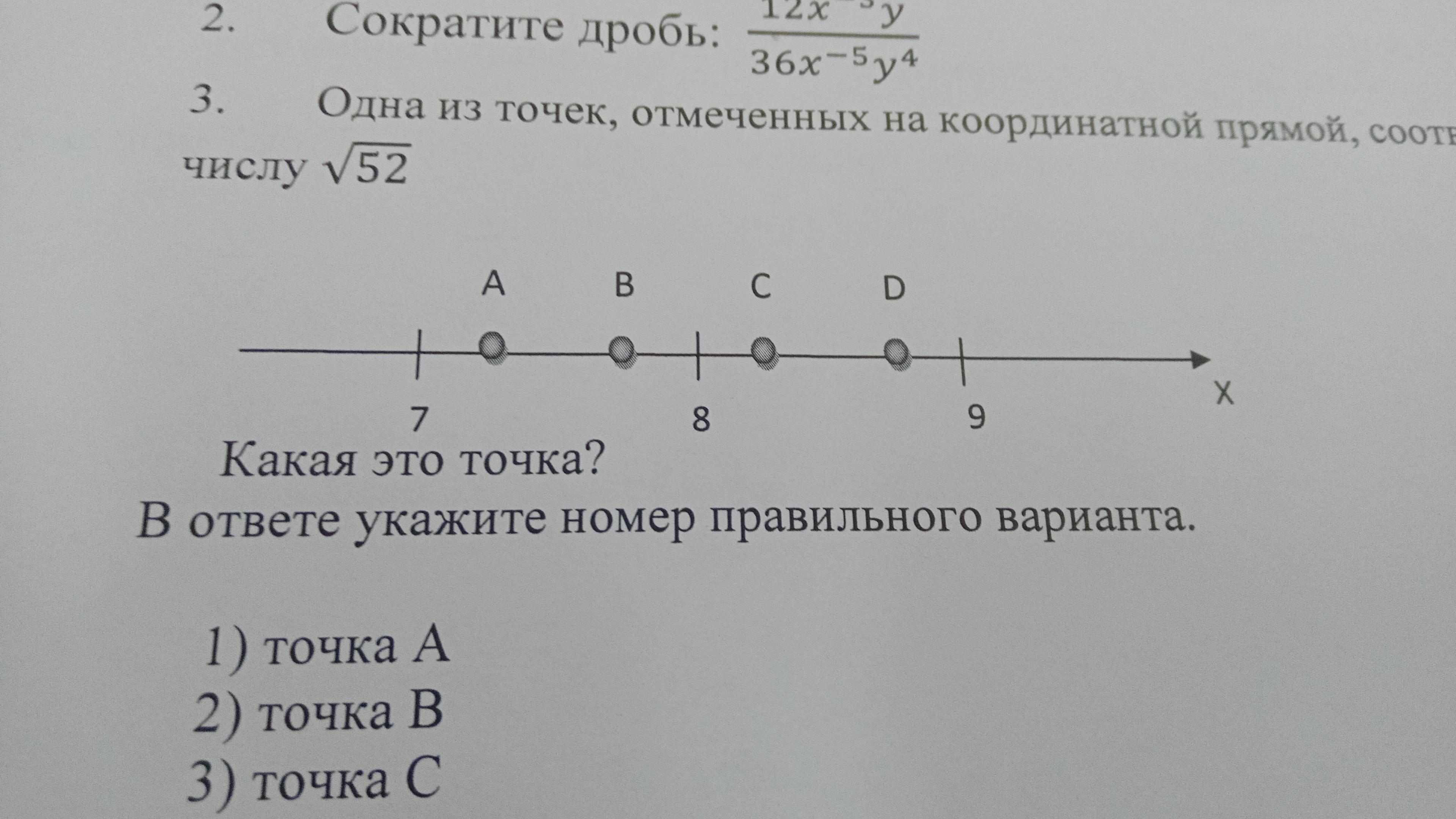Одна из точек отмеченных на координатной прямой соответствует числу √52 какая это точка