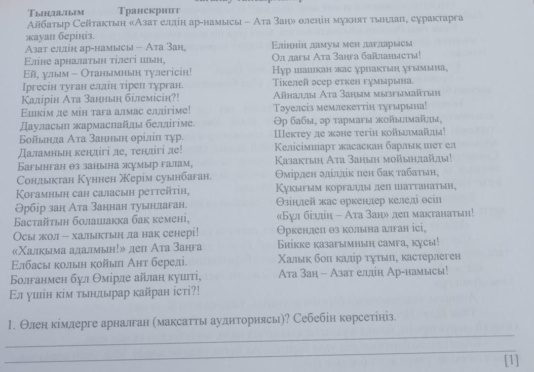 Өлең ҚР ның азаматтарына арналған. Ата заңды құрметтеуге шақырып, Ата заңымызбен мақтануды үгіттемекде. (возможно, сама ищу ответ)