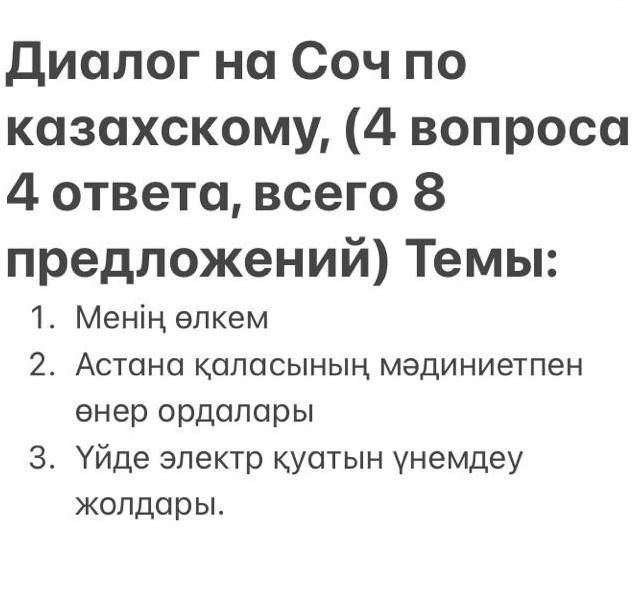 -Жоқ, Көкшетау шағын қала. Ол өте әдемі, көркем қала. Көкшетауда театрлар, мектептер, спорт сарайы, саябақтар бар. Қаланың маңайында ағаштар, таулар, Қопа көлі бар. Көкшетау менің туған өлкем. Ал сенің туған өлкен не, Андрей?