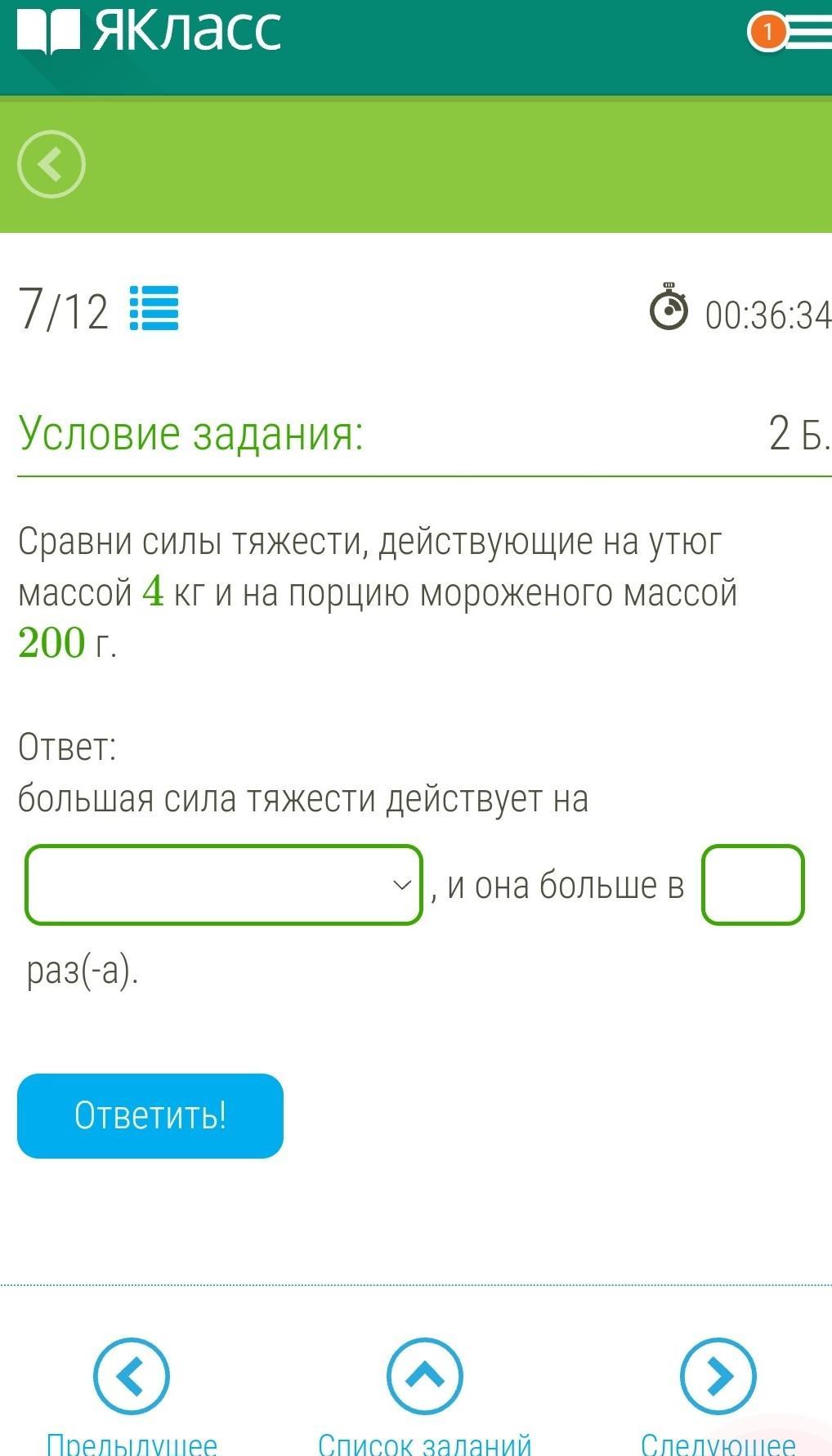 Сравни силы тяжести, действующие на утюг массой 4 кг и на порцию мороженого массой 200 г. Ответ: