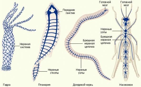 Дальнейшее развитие нервной системы привело к концентрации нервных клеток в определенных местах тела и формированию нервной ткани.